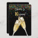 Brindis de champán sobre negro con confeti cayendo para la invitación de la fiesta del décimo aniversario de bodas.