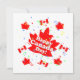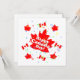 Invitaciones con mi diseño de hojas de arce, banderas canadienses, confeti y el texto "Feliz Día de Canadá"!