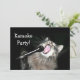 Es noche del Karaoke en los ganchos agarradores grises del callejón local y de este gato de tabby el micrófono y caterwauls lejos invitándole a que se una a en la invitación de la foto