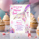 Encanta tu celebración con esta elegante invitación a la sirena, con una cruz dorada brillante, tonos rosa y morado y burbujas de oro brillantes, perfecto para chicas que sueñan con aventuras mágicas bajo el mar.