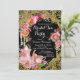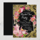 Invitación Fiesta del Té de Rosa con Brillo Negro y Dorado