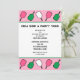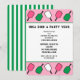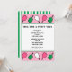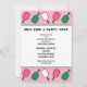 Invitaciones creativas para fiestas o eventos de pickleball con divertida línea de dink, tema deportivo, y patrón de paletas de pickleball en rosa y verde para jugadores de pickleball.