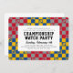 Celebra el gran partido con esta moderna invitación al fútbol y al tablero de ajedrez y reúne amigos para un fiesta de relojes. Fácil de editar cuadros de texto y un práctico código QR escaneado en la parte trasera envía invitados a tu sitio web de RSVP en línea o organización de potluck. Esta invitación es la elección perfecta para un fiesta que celebra ambos equipos con patrones contrastantes en dos conjuntos de colores. Actualmente configurado para una dinámica de equipo azul y oro versus rojo y plata O puede cambiar los colores para que se ajusten a sus necesidades usando el botón de edición y seleccionando cada mosaico de patrón individualmente, la forma de color debajo y el fondo para el personalizar para los colores de los equipos que estará observando.