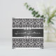 La elegante invitación de cumpleaños de dulces 16 con damasco negro y blanco es perfecta para una fiesta temática de dulces 16 en negro y blanco.