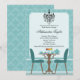© Socialite Designs. Un elegante diseño de invitación a la fiesta del té que incluye un diseño de mesa antigua, papel pintado damasco, decoración de mesa y lámpara de araña. Personaliza esta invitación con tu propio texto. Se puede cambiar el estilo de fuente y el tipo de papel. Añade tu propio toque personal añadiendo adornos como cintas, diamantes de imitación o flores de papel sólo por nombrar algunos. ¿Necesita AYUDA con la personalización? Por favor, no dudes en contactarme con tus requisitos y un enlace a este diseño.