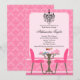 © 2011 Diseños de Socialite. Un elegante diseño de invitación a la fiesta del té que incluye un diseño de mesa antigua, papel pintado damasco, decoración de mesa y lámpara de araña. Personaliza esta invitación con tu propio texto. Se puede cambiar el estilo de fuente y el tipo de papel. Añade tu propio toque personal añadiendo adornos como cintas, diamantes de imitación o flores de papel sólo por nombrar algunos. ¿Necesita AYUDA con la personalización? Por favor, no dudes en contactarme con tus requisitos y un enlace a este diseño.