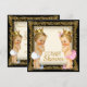 Invitación de revelación de género de príncipe o princesa para baby shower con hermoso fondo dorado y adorable pequeño príncipe y princesa con pañales y coronas en un hermoso y elegante fondo dorado. Esta ornamentada invitación de revelación de género de príncipe y princesa para baby shower se personaliza fácilmente para su evento agregando los detalles del evento, estilo de fuente, tamaño y color de fuente, y redacción. También puede cambiar el color de fondo de esta adorable invitación de revelación de género para baby shower para que coincida perfectamente con su tema.