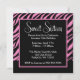Dulce temático del estampado de zebra rosado femenino y descarado dieciséis invitaciones de la fiesta de cumpleaños.