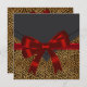 Hermosa invitación de fiesta de leopardo negro y rojo con lazo rojo. Esta elegante invitación de fiesta de leopardo rojo se personaliza fácilmente agregando los detalles de su evento, estilo de fuente, tamaño y color de la fuente, y redacción.
