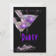 "Cumpleaños 40" / "Fiesta elegante" / "Cumpleaños importante" hito, invitaciones de fiesta con plantillas de texto totalmente personalizables. DISEÑO: Un diseño chic, clásico, elegante y sofisticado de cerezas moradas descansando en una copa de cóctel de arte de dibujos animados, llena de licor marrón claro y azul. El gráfico está colocado sobre un fondo negro en la parte delantera y un fondo blanco en la parte trasera. PERSONALÍZALO: Cambia las plantillas para reflejar cualquier texto de tu elección personal. COLOR DE FONDO: Para agregar tu propio color de fondo, elimina las plantillas de imagen y selecciona el botón "personalízalo" para elegir entre la amplia gama de colores disponibles. GAMA DE PRODUCTOS: Para ver toda la gama de productos elegantes y sofisticados "combina y combina" de este diseño original, visita nuestra página de inicio. DERECHOS DE AUTOR: El diseño está