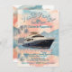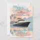 Invitaciones para la fiesta "Rock the Yacht Boat". Cuenta con un yate privado glamuroso con un fondo de isla tropical con puesta de sol en acuarela. ¡Perfecto para una fiesta en el agua! Ideal para una fiesta de crucero para despedida de soltera, compromiso, rock de yate de karaoke, aventura de fin de semana o celebración de cumpleaños. Todo el texto se puede cambiar para ajustarse a nuestras necesidades. Colores coral y aqua preciosos. Para hacer más cambios, vaya a Personalizar esta plantilla. En la parte inferior, verá "¿Quiere personalizar aún más este diseño? Haga clic en EDITAR utilizando la herramienta de diseño. Desde allí, puede cambiar algunas de las fuentes y algunos colores, mover cosas o eliminar lo que necesite. Un poco de contenido generativo de mitad de camino combinado con elementos dibujados a mano.