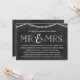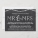 Esta bonita invitación de fiesta de aniversario de boda con estilo rústico chic presenta "Sr. & Sra." escrito con tipografía vintage, una cadena de luces en forma de corazón brillantes, y un fondo de pizarra.