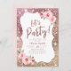 Invitación Fiesta espumoso rosa purpurina de oro y floral