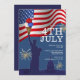 Elija esta invitación de Cumplemesa de Día de la Independencia del 4 de Julio Estrellas y Franjas y celebre la Libertad. ¡La parrilla está caliente, el helado está frío y estamos teniendo una fiesta del 4 de julio!