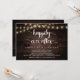 Hermosa celebración de la fiesta Felices Para Siempre, anuncio de boda y fuga / tarjeta de invitación, en madera de granja rústica, diseño de luces de cadena. Esto es perfecto para la recepción de su boda y la fiesta de celebración después de la boda. Agregue sus detalles en la fuente / letra coincidente.