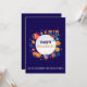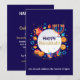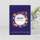 Fiesta Feliz Janucá Diseño de Menorá de Oro para la Fiesta Judía. Tarjeta de invitación con texto "Únete a nosotros y celebra el festival de las luces". Decoración de la Fiesta Judía de Janucá con símbolos decorativos tradicionales de Janucá - Judaica. Diseño de Hanukkiah menorá de color azul marino, donas, dreidel, candelabro con velas, ornamentos del Festival de Janucá de la estrella de David e ilustración de luces de neón azules brillantes. Decoración del Evento del Festival de las Luces de Janucá. Jerusalén, Israel. Invitaciones y papelería > Invitaciones y anuncios. Diseño moderno de Judaica con plantilla de texto. Personalízalas agregando nombre o texto de deseos. Diseño de dos caras.