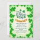 Invitación de fiesta festiva del Día de San Patricio con borde de trébol Invitación. El diseño es para una fiesta del Día de San Patricio. El diseño es predominantemente verde y blanco, con numerosos tréboles (tréboles de tres hojas) como elementos decorativos alrededor del borde y dentro del área de texto central.