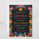 Magnífico diseño de Fiesta Mexicana Floral con flores brillantes rosas, azules y amarillas sobre fondo negro