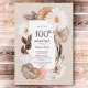 Una invitación de cumpleaños número 100 floral rústica boho con flores y hojas de otoño.