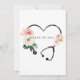 Un estetoscopio floral blanco rosa de color agua, único y elegante, moderno, en forma de corazón, y una foto grad para una invitación a una fiesta de enfermería graduada, con escritura y tipografía de serif. Estetoscopio floral en forma de corazón en la parte posterior de la invitación. Añade tu año de graduación. Consulte la colección completa de productos coincidentes para este diseño en: https://www.zazzle.com/collections/nurse_graduation_floral_stethoscope-119556213467602116