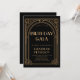 Una gran diversión espera con esta elegante invitación de fiesta de cumpleaños con un tema de los años 20, con un marco de decoración y una elegante tipografía vintage. Una plantilla de invitación perfecta para una fiesta de cumpleaños para un tema de Gran Gatsby, en oro y negro. Ya sea para una fiesta de cumpleaños 40, 50, 60, 70 u 80, o para una centésima, este vintage marco art deco nouveau con un falso tema de Relieve metalizado de oro (efecto digital) brillará brillantemente. Una ruidosa fiesta temática de los años 20 para una muñeca de cualquier edad. También es adecuado para un evento de gala empresarial.