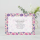Dibujo floral morado en la parte delantera y trasera. Invitación genérica para celebración de fiesta para cualquier ocasión, incluyendo cumpleaños, boda, graduación, profesional, corporativa, aniversario, negocios, gran apertura, baby shower, despedida de soltera, casa abierta, inauguración de casa, cena, etc.