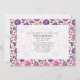 Dibujo floral morado en la parte delantera y trasera. Invitación genérica para celebración de fiesta para cualquier ocasión, incluyendo cumpleaños, boda, graduación, profesional, corporativa, aniversario, negocios, gran apertura, baby shower, despedida de soltera, casa abierta, inauguración de casa, cena, etc.