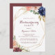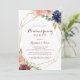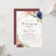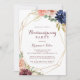 Esta geométrica y rústica invitación a una fiesta de bienvenida en casa es perfecta para una simple celebración familiar y de amigos. El diseño se compone de acuarela de color púrpura, marina, rubor, burdeos, flores de la marina, hojas verdes y doradas y un marco geométrico elegante.