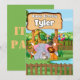 Estas invitaciones de fiesta personalizadas y frescas tienen un diseño que presenta una colección de animales del zoológico, con animales debajo de un cartel y nombre encima dentro de un área cercada con hierba verde y estanque. Estas invitaciones se pueden personalizar con cualquier nombre. Estos suministros para fiestas con tema de animales del zoológico son una excelente adición a cualquier fiesta de cumpleaños para aquellos niños amantes de los animales.