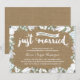Esta bonita invitación para la fiesta de bodas por el vigésimo aniversario presenta una encantadora caligrafía, hermosas flores azules y blancas, un diseño tipográfico que dice "Acabamos de casarnos (¡hace veinte años!)", y un fondo de papel kraft impreso. Puede personalizar fácilmente esta elegante invitación para el vigésimo aniversario con los detalles de su fiesta.