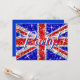 Vuele a la bandera del Reino Unido con este divertido diseño de Union Jack con estrellas diseminadas sobre un estilizado fondo de patrón de "aspecto secuencial". Invitación con un diseño de personalizable rojo, blanco, gris plateado y azul para que puedas personalizar con tu propio texto, fotos e ideas. Tenga en cuenta que esta es una imagen de arte digital impresa. El producto no brilla ni contiene purpurinas o secuencias reales.