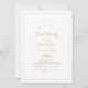 Esta minimalista invitación para una fiesta de graduación de oro es perfecta para un fiesta al aire libre. El moderno diseño romántico presenta una tipografía clásica en oro y blanco, acompañada de una caligrafía rústica y elegante con un estilo de letra a mano vintage. Personalizable de cualquier color. Mantenga el diseño simple y elegante, tal como está, o lo personaliza añadiendo sus propios gráficos y obras de arte.