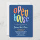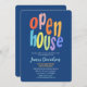Una invitación colorida y divertida para una fiesta de casa abierta. Esta invitación fabulosa presenta tipografía moderna y audaz sobre un fondo azul. Fácil de personalizar con los detalles de tu celebración de casa abierta o cumpleaños.