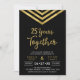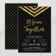 Invitación moderna para aniversario de bodas número 25 con un elegante chevron geométrico y las palabras "25 años juntos" en falso oro sobre fondo negro. La tarjeta incluye un reverso con un patrón coincidente. Consulte otros artículos coincidentes aquí http://www.zazzle.com/collections/modern_faux_gold_chevron_celebration_collection-119531050277382712?rf=238364477188679314