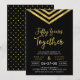 Invitación moderna para aniversario de bodas número 50 con un elegante chevron geométrico y las palabras "Cincuenta años juntos" en falso oro sobre fondo negro. La tarjeta incluye un reverso con un patrón coincidente. Consulte otros artículos coincidentes aquí http://www.zazzle.com/collections/modern_faux_gold_chevron_celebration_collection-119531050277382712?rf=238364477188679314
