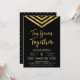 Invitación moderna del décimo aniversario con un elegante chevron geométrico y las palabras "Diez años juntos" en falso oro sobre un fondo negro. La tarjeta incluye un lado posterior con un patrón coincidente. Echa un vistazo a los artículos coincidentes aquí http://www.zazzle.com/collections/modern_faux_gold_chevron_celebration_collection-119531050277382712?rf=238364477188679314