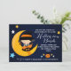 Moderna invitación para la fiesta de disfraces de Halloween Bash para los niños. Ilustrado con una linda bruja sentada en la luna y calabaza. Algunos elementos de los diseños de Zenware.