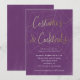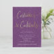 La tarjeta moderna y elegante de la plantilla de la invitación del fiesta de Halloween que ofrecía un fondo púrpura sucio y una tela de araña con la mano puso letras al falso oro para script el texto que dice los "trajes y los cócteles." El título de la invitación dice que "únase a nos si usted se atreve para un fiesta spooktacular de Halloween." La información del fiesta es fácilmente personalizable.