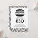 Elegante y moderna barbacoa en blanco y negro con una hamburguesa en blanco y negro con un borde de zigzag chevron. Haga girar nuestra popular barbacoa invitándola a ver un chevron a juego para un toque extra especial. ¡Divertida invitación para todos tus fiestas de verano!