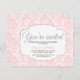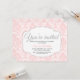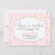 Modelo rosado elegante, llamativo del damasco en el fondo, ofreciendo un marco elegante. Escrito "le se invitan" en gris.