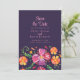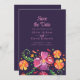 Aprovecha la elegancia con un toque de vitalidad a través de nuestra "Fiesta Floral Morada Mexicana Vibrante Salvar la Invitación de la Fecha" con un fondo morado oscuro. La mitad inferior florece con flores acuáticas pintadas a mano en tonos naranja, rojo y violeta, exuberante energía y celebración. La parte superior presenta los detalles cruciales de Guardar la fecha en un texto rosa suave y refinado, creando un contraste cautivante contra el lienzo oscuro. Este diseño irradia sofisticación y festividad, ofreciendo una manera audaz y elegante de anunciar su próxima ocasión especial.