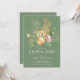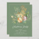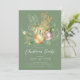 Esta elegante invitación a la fiesta de Navidades incluye una hermosa rama de pino, adornos de Navidades verdes y dorados y un ángel de oro sobre un fondo verde. La invitación es perfecta para invitar a sus amigos y familiares a una reunión festiva. El diseño general es festivo y refinado, y la invitación impresiona a los clientes.
