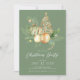 Esta elegante invitación a la fiesta de Navidades incluye una hermosa rama de pino, adornos de Navidades verdes y dorados y un árbol de oro sobre un fondo verde. La invitación es perfecta para invitar a sus amigos y familiares a una reunión festiva. El diseño general es festivo y refinado, y la invitación impresiona a los clientes.
