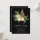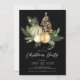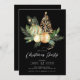 Esta elegante invitación a la fiesta de Navidades incluye una hermosa rama de pino, adornos de Navidades verdes y dorados y un árbol de oro sobre un fondo negro. La invitación es perfecta para invitar a sus amigos y familiares a una reunión festiva. El diseño general es festivo y refinado, y la invitación impresiona a los clientes.