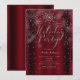 Invitaciones de Fiesta Navideña Copo de Nieve Elegante Rojo Plateado Moderno.