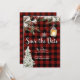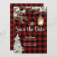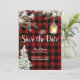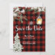 Fiesta de vacaciones de Navidades con manto de nieve Invitación a la cita - Un diseño cálido y acogedor con ramos de pino acuarela natural, pinos, ramas y copos de nieve, con una brillante lámpara de entrenador en un cálido fondo de búfalo rojo, esta invitación incluye 'Save the Date' y otro texto en una calligrafía festiva con letras a mano, con el resto de la invitación en unos bellos sans tiradores si pografía. El recordatorio perfecto para su próximo evento, para asegurar que sus huéspedes tengan el día libre. Copyright Anastasia Surridge Designs, todos los derechos reservados.