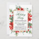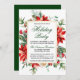 Invitación Fiesta Navideña Floral Verde de Poinsettia Acuarel