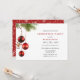 Invite a sus invitados de vacaciones con estilo con esta elegante invitación de la fiesta de los Navidades. El diseño presenta un árbol de Navidad y decoraciones de fondo blanco. Personalice todos los detalles de su fiesta. El dorso de la tarjeta es color de fondo rojo con una rociada de nieve blanca. ¡¡¡Feliz Navidad!!!