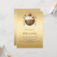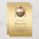 Una invitación para un Fiesta de Navidades. Un falso fondo dorado. Decorada con una gran cosecha dorada que parece bauble. Personalice y agregue los detalles. Texto negro.