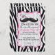 Invitación Fiesta negro y rosado del Sleepover del bigote de